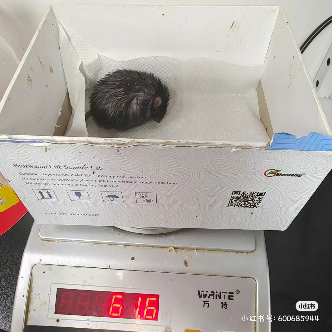 圖一圖二為高脂飼料喂養2周的小鼠情況;圖三圖四為高脂飼料喂養4周的小鼠情況;圖五圖六為小鼠過度肥胖后的身體狀態